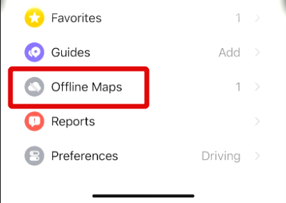 2。タップしますオフラインマップiPhoneでダウンロードされたオフラインマップを表示します。