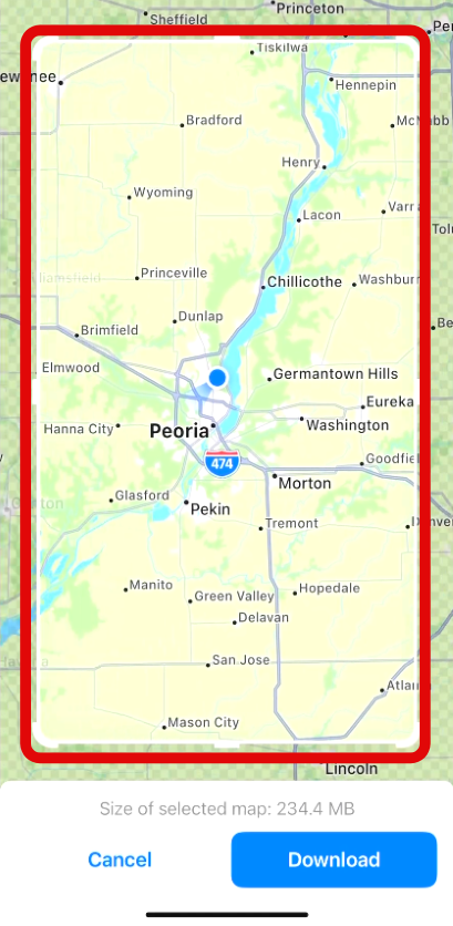13。コーナーをタップしてドラッグして、オフラインでダウンロードするマップの領域を選択します。
