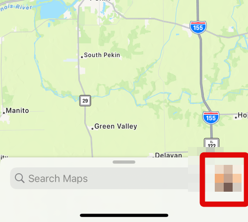 1。iPhoneでAppleマップを開き、画面の下部にある検索バーの横にプロフィール画像をタップします。