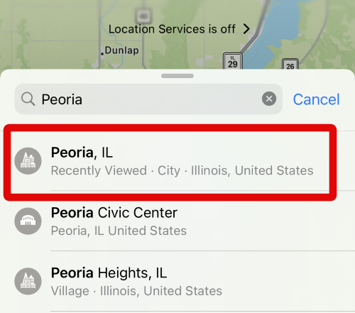 11。必要に応じて、検索バーをタップして新しい場所を検索することもできます。