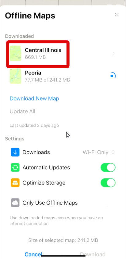 6。タップします新しいマップをダウンロードします上部に。これにより、iPhoneにマップをダウンロードできます。