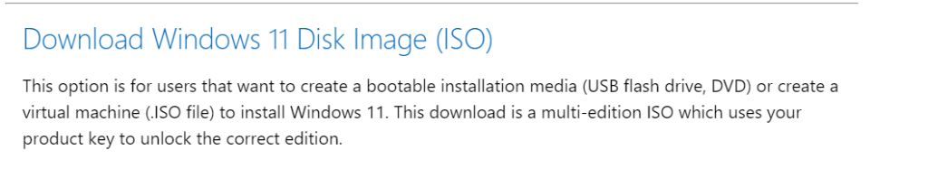 2。に向かいますWindows11ディスクイメージ(ISO)をダウンロードするセクション。