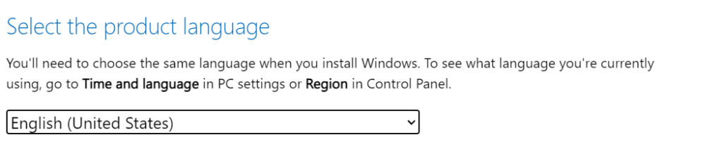 5。あなたを選択します優先言語から製品言語を選択します落ちる。
