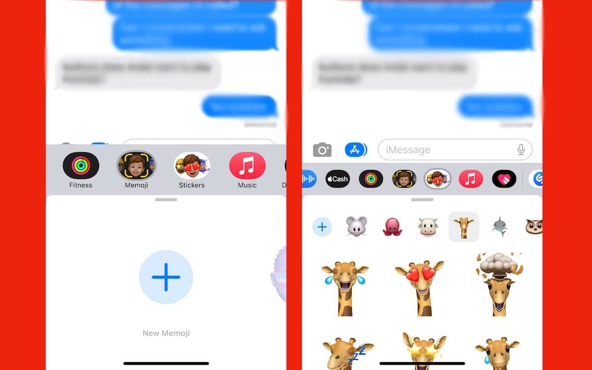 - メッセージアプリでiMessageチャットを開き、UIの下部にあるアプリドロワーのMemojiまたはStickersアプリをタップします。