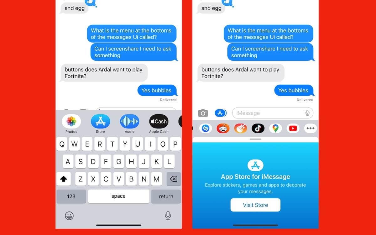 iOS 14では、AppleはImessageと互換性のあるアプリを表示するために、メッセージアプリにアプリライブラリまたはアプリの引き出しを導入しました。ユーザーは、ImessageのためにApp Storeから新しいアプリをダウンロードすることもできます。