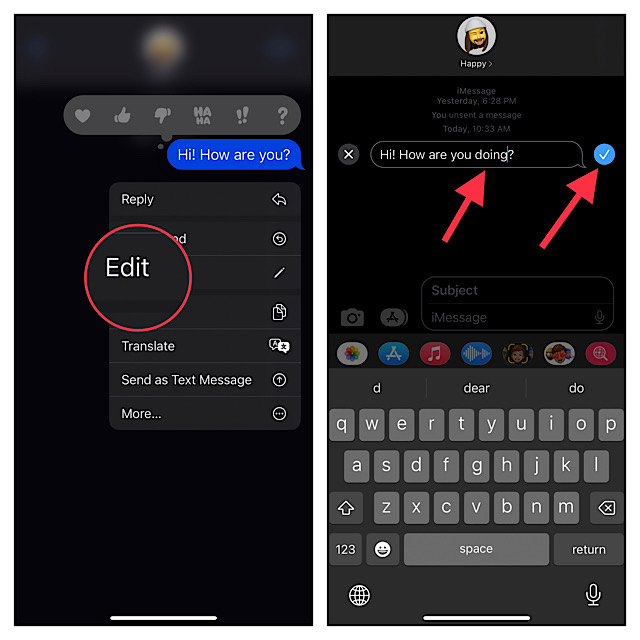 - さらに、送信してから最大15分しかiMessageを編集できます。それ以外の場合、編集ボタンは表示されなくなります。