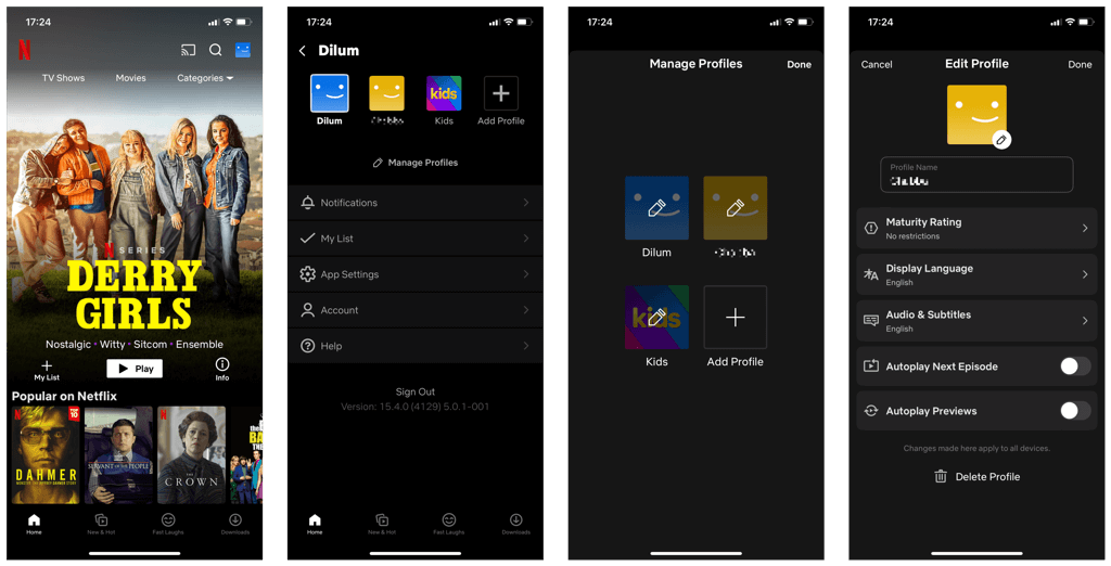 iOS、iPados、およびAndroidデバイスのNetflixプロファイルを編集または削除する