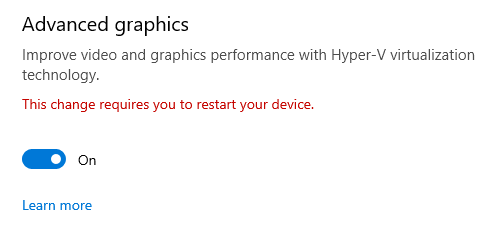 Advanced Graphics Supportがアプリケーションガードに利用可能になるようになりました。同じ手順に従って、ステップ6で高度なグラフィックをオフにすることにより、いつでもこのオプションをオフにすることができます。