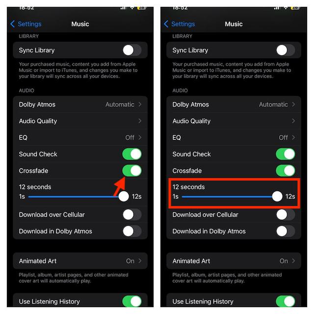 iOS 17 CrossFadeをアクティブにして、iPhoneでApple Musicの曲の間の沈黙を削除する