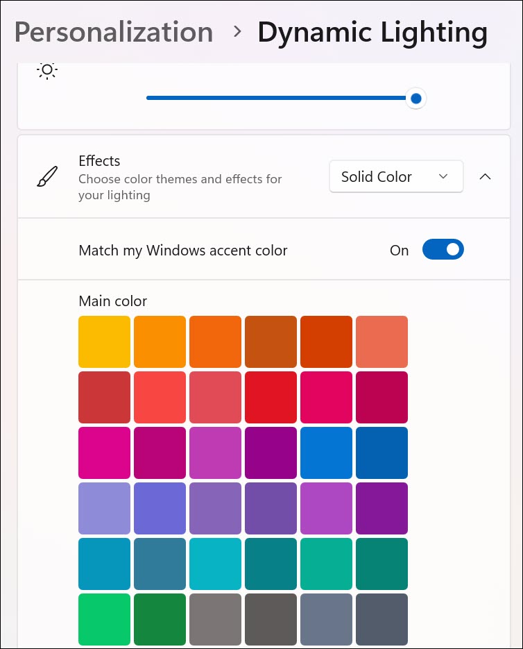 ダイナミック照明を使用すると、Windows 11は、ユーザーがWindowsアクセントの色をRGBデバイスに拡張できるようにすることで、このパーソナライズをまったく新しいレベルに引き上げます。これは、画面の色が周辺機器のRGB照明とシームレスに同期できることを意味します。