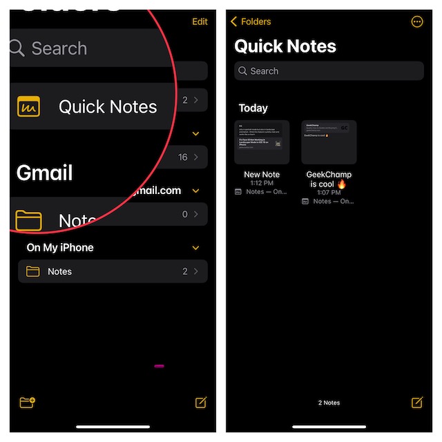 iPhoneですべてのクイックメモにアクセスして表示する方法
