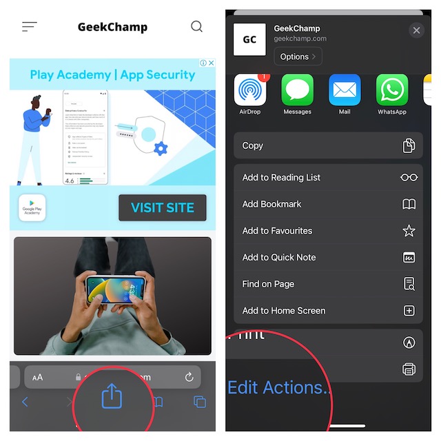 3。次に、「」をタップします。アクションを編集します」共有シートの下部に。