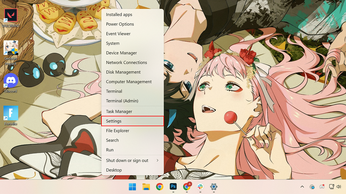 - を右クリックします始める>をクリックします設定オプション。