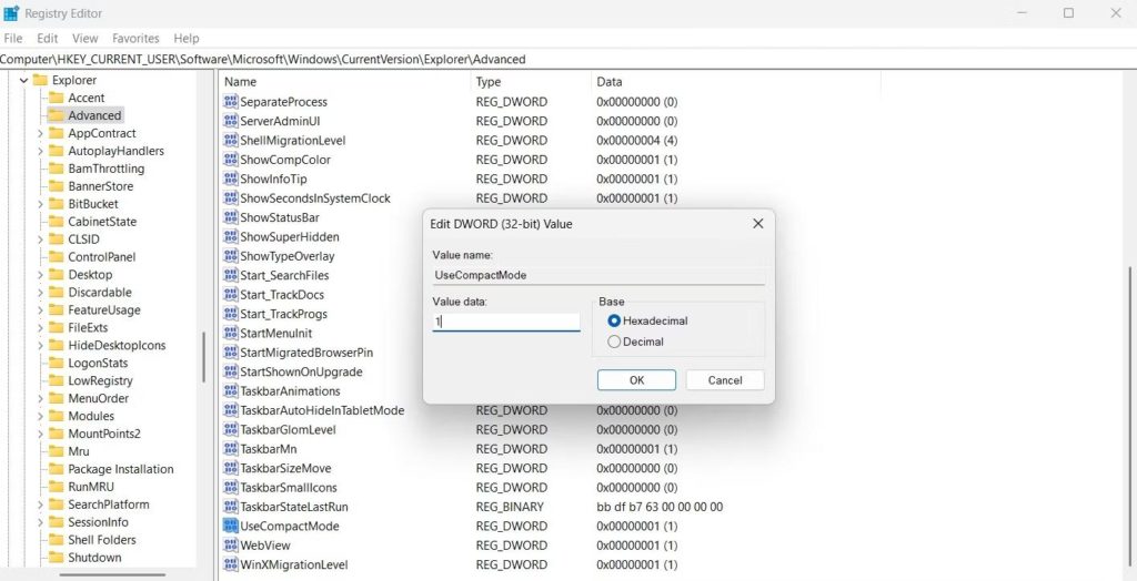 方法3:Windowsレジストリを使用してコンパクトビューを有効にします