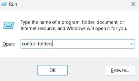 フォルダーオプションを使用して、コマンドバーの凝縮ビューオプションがない場合はタスクを完了できます。フォルダーオプションを開くにはいくつかの方法がありますが、実行ダイアログボックスを使用するのが最も簡単です。