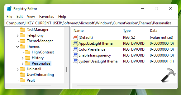 HKEY_CURRENT_USERSOFTWAREMicrosoftWindowsCurrentVersionThemesPersonalize