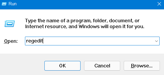 1。そもそも、開いています走るを押すことによってWindows + rキーボードに同時にキー。 [実行]ダイアログボックスで、入力しますregedit開くレジストリエディター。