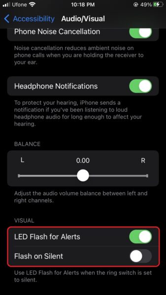 Flash LEDアラートは、耳が聞こえない、または聴覚を聞いたことがある個人にとってはオプションのアクセシビリティ機能ですが、iPhoneのスピーカーが機能していない場合も有効にすることもでき、着信やテキストを発表できません。また、騒々しい環境で可聴アラートを逃す傾向がある場合、またはiPhoneのリンガーをオフにする傾向がある場合にも便利な機能です。