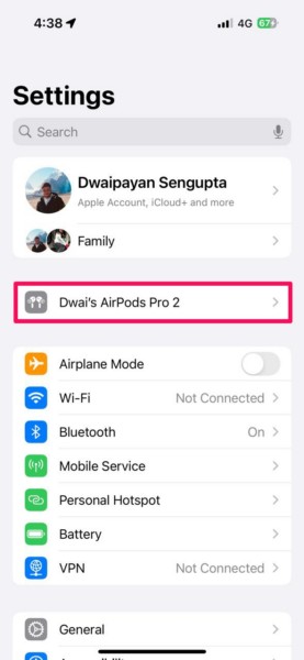 1。AirPods Pro 2ペアリングされてiPhoneに接続して、設定アプリiOSデバイスで。