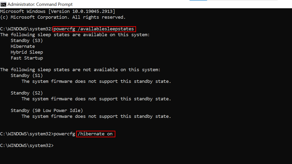 - 冬眠状態を確認するには、次のコマンドを入力します>押します入力キーボード上: