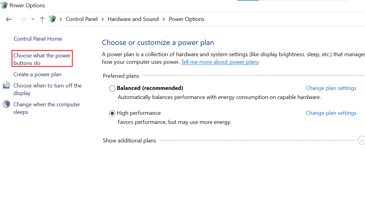 - 「」をクリックします電源ボタンが何をするかを選択します" オプション。