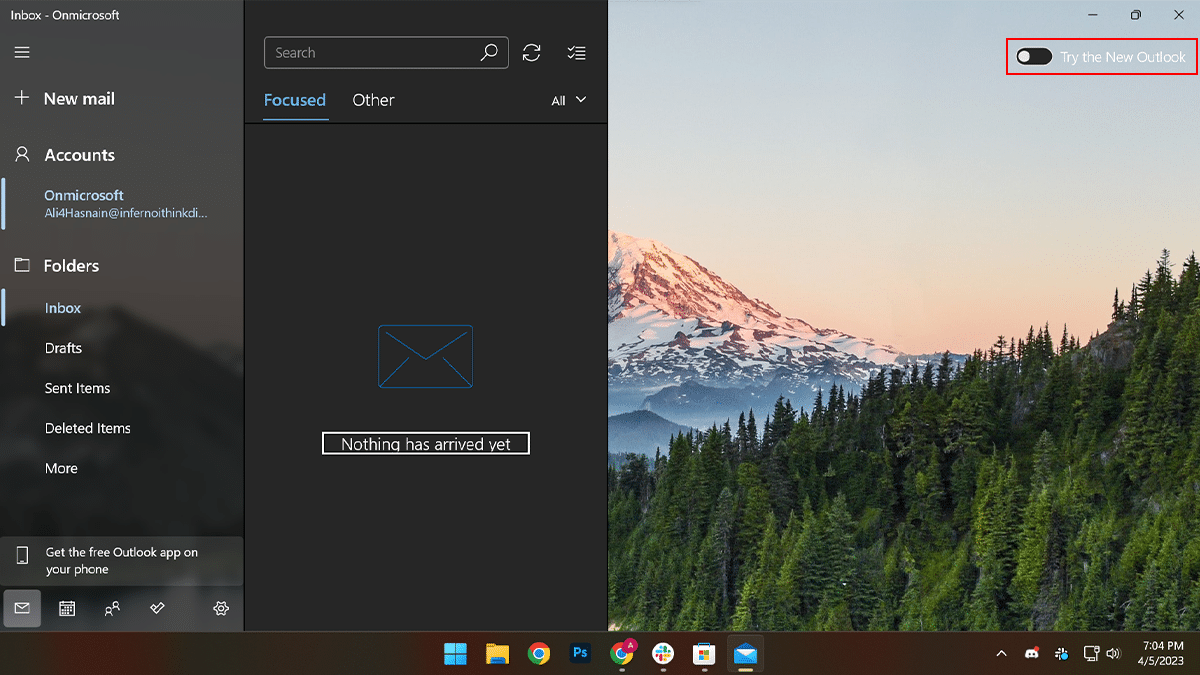 注:「新しいOutlookを試す」トグルスイッチが右上隅に表示されない場合は、オプションを使用できるように電子メールクライアントアプリケーションを更新する必要がある場合があります。メールとカレンダーのアプリがある場合は、Microsoftストアを開き、ライブラリセクションに移動し、[更新の取得]ボタンをクリックします。