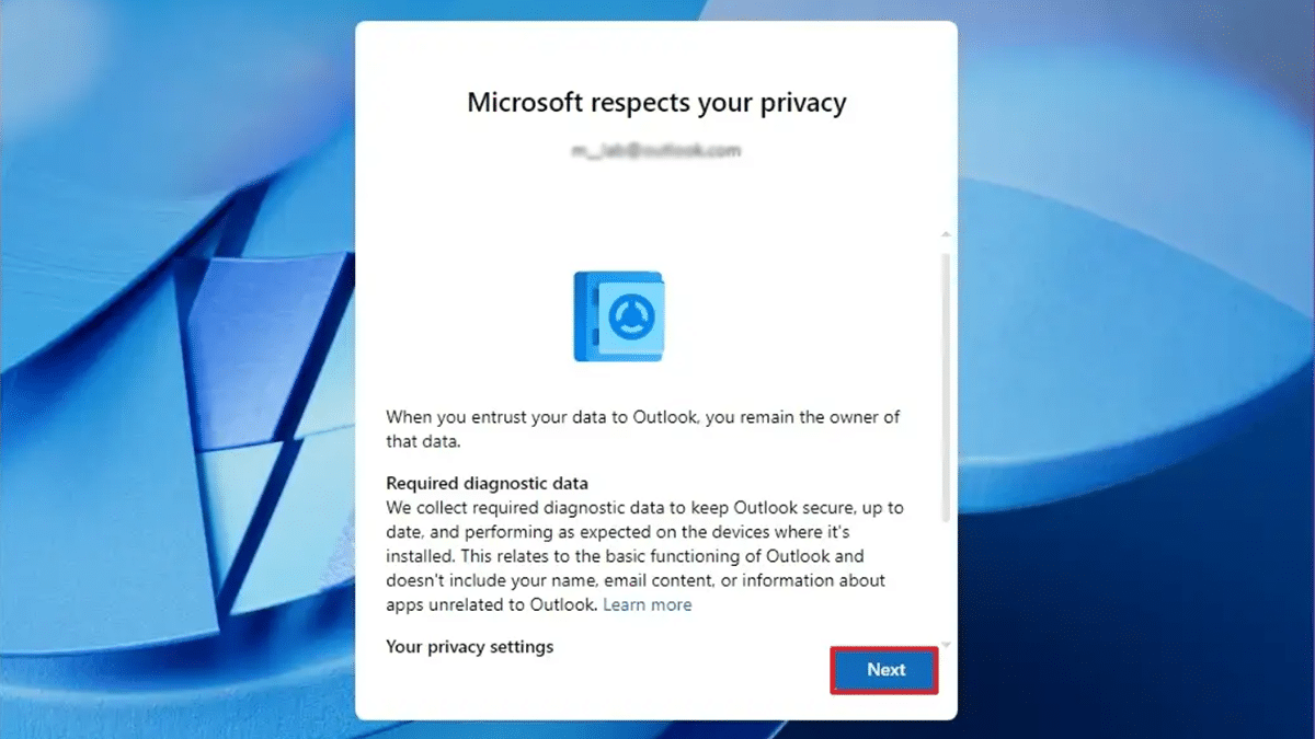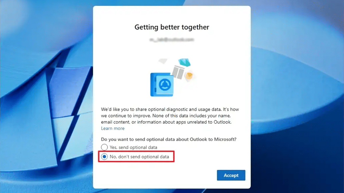 - [いいえ、オプションのデータを送信しないでください]オプションを選択します> [受け入れる。