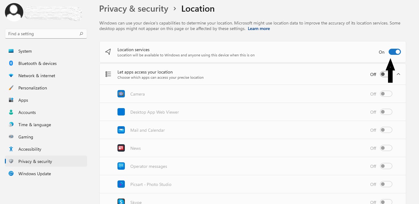 4。さて、オンまたはオフにします必要に応じてロケーションサービス。 (スクリーンショットを参照)