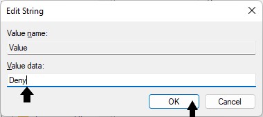 - そうでなければ、入力します値データとして拒否、Windows11でロケーションサービスを無効にしたい場合。(スクリーンショットを参照)