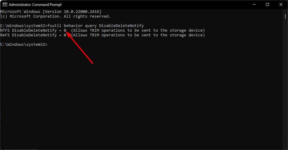 ステップ3:SSDのリストが表示されます。SSDは、値が0または1の隣に1つのリストが表示されます。 0の値は、トリムが有効になっていることを示し、値1は無効になっていることを示します。