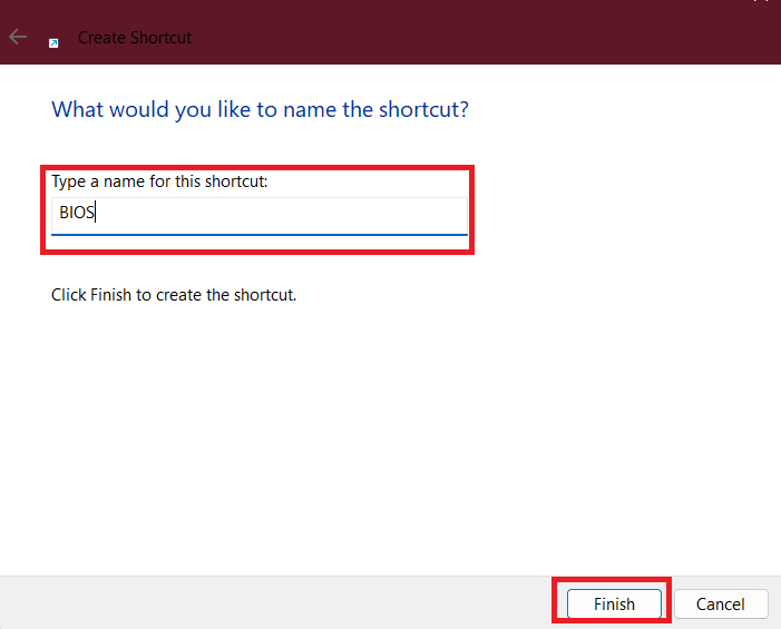 5。ショートカットに名前を付けてクリックします仕上げる作成するボタン。