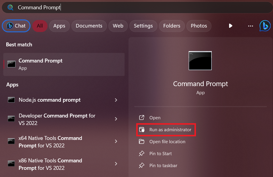 1。開きますスタートメニュー、そして検索しますコマンドプロンプト。