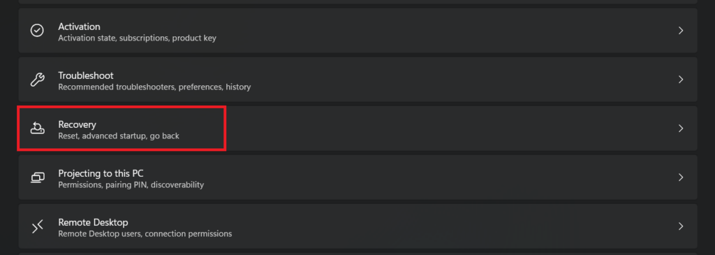 shutdown /r /o /f /t 004。選択しますトラブルシューティングWindows Recovery環境で。