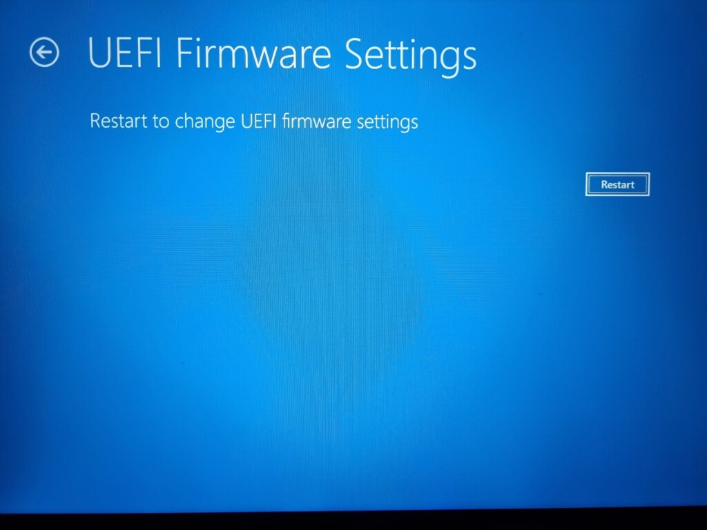 7。クリックします再起動ボタンとPCが起動しますuefi/BIOS。