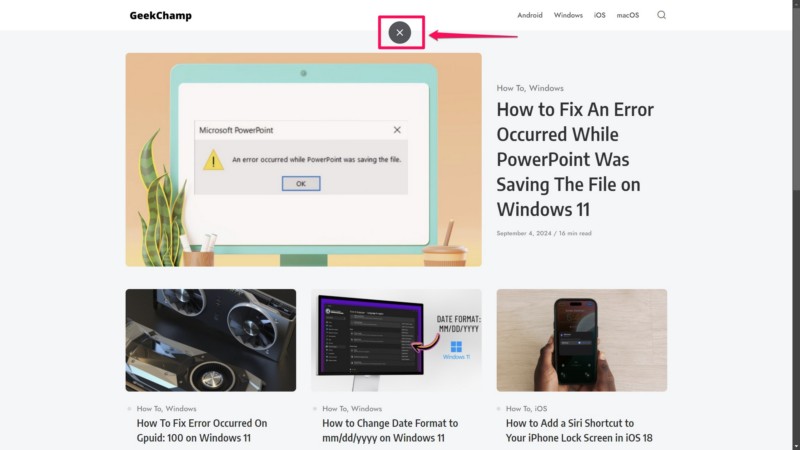 2。これで、クリックするだけです(x)ボタンを閉じますフルスクリーンモードが有効になっているウィンドウの場合、デバイスで閉じることができます。