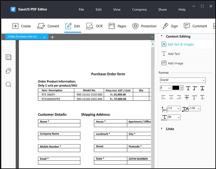 方法2:Easeus PDFエディターを使用して、埋められないPDFフォームに記入します
