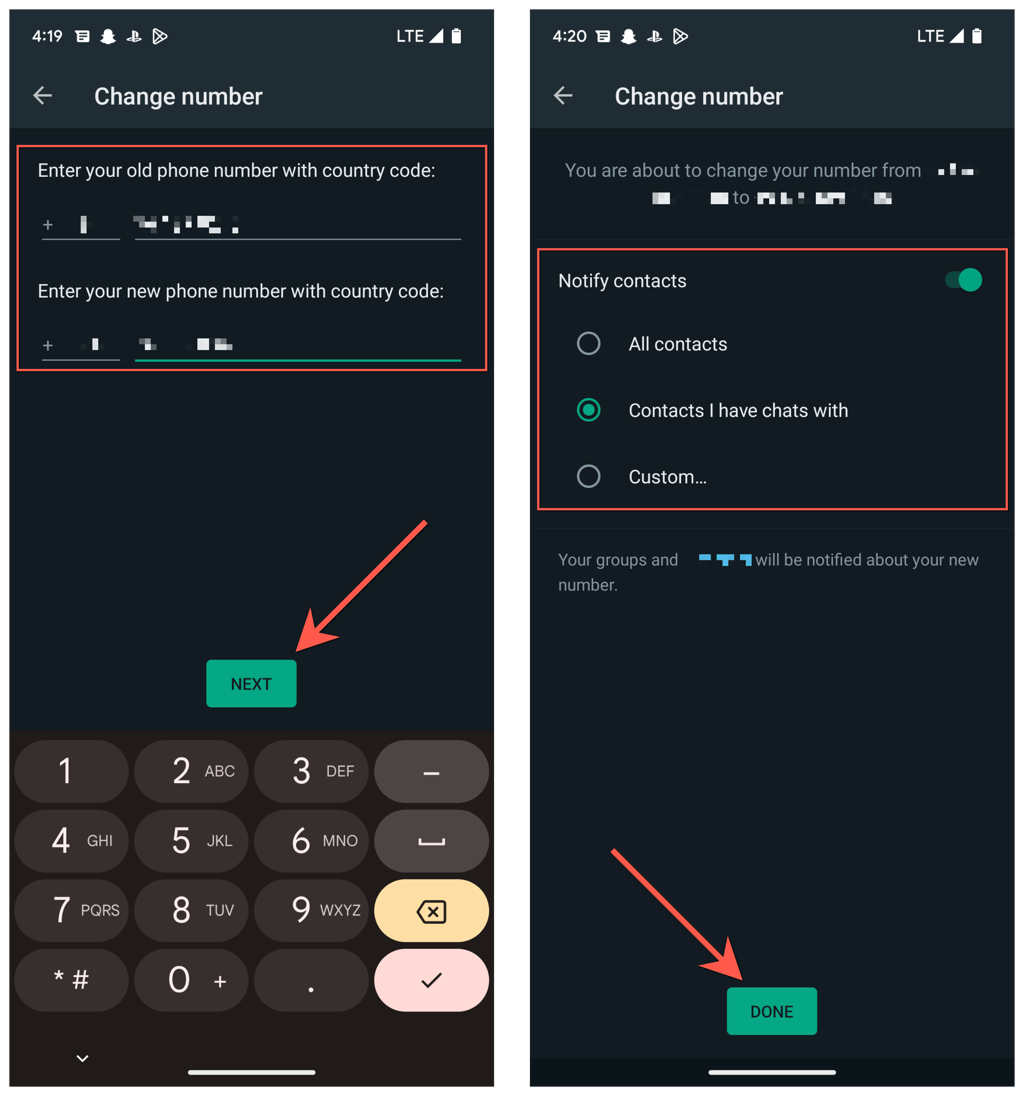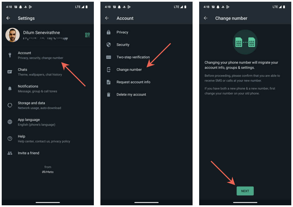 WhatsAppに組み込まれた変更番号ツールは、登録された電話番号を切り替えるのに非常に便利です。 WhatsAppチャットを保存し、履歴と設定を呼び出し、さらには数の変更についてWhatsAppグループチャットと連絡先を自動制作します。 SMSを介して新しい番号を確認する必要があるため、必ずSIMカードを携帯電話に挿入してください(まだお届けしていない場合は)。