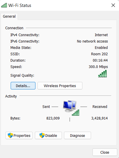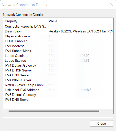 このネットワーク接続のIPv4およびIPv6 DNSの詳細を確認できます。