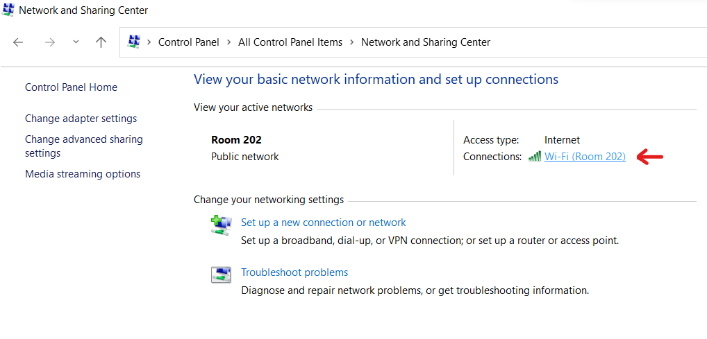 - ここで、タップしますプロパティ以下のスクリーンショットに示すように、接続されたネットワークの場合。