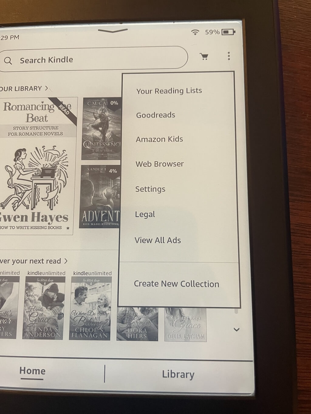 - Kindleホーム画面の右上隅にある3つのドットをタップします。