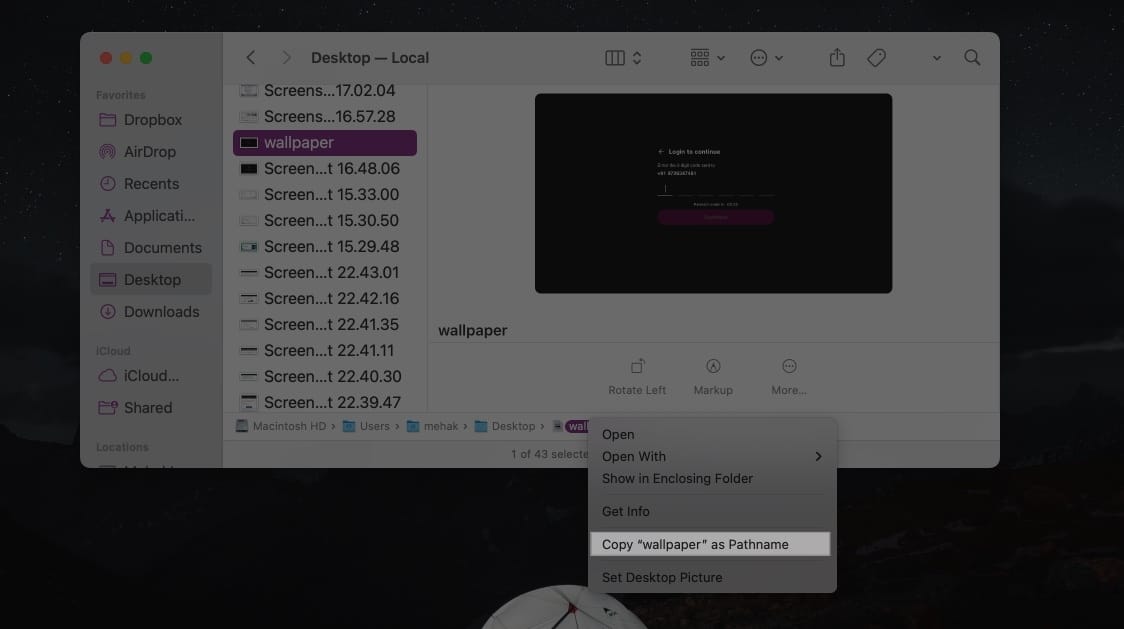 たとえば、たとえば、デスクトップにあるwallpaper.pngという名前のファイルには、このファイルパスがあります。/users/mehak/desktop/wallpaper.png