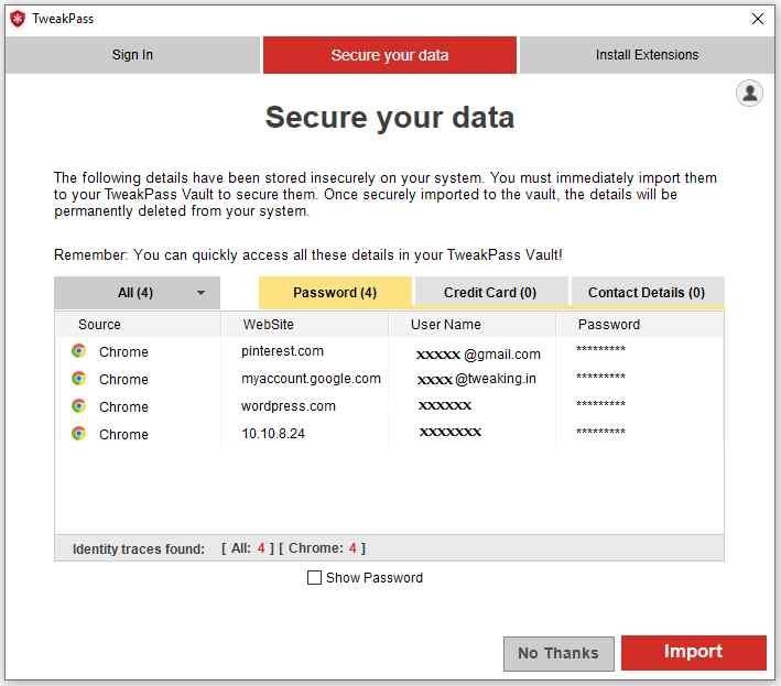 そのようなすべての問題に対する答えであるTweakPassのようなパスワードマネージャーを入力してください。征服できない強力なパスワードを考え出し、マスターパスワードによって保護された安全な金庫の後ろにそれらを保持することができます。ブラウザ拡張機能として利用でき、PCとモバイルデバイスの両方でアクセスできます。