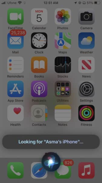 - 次に、コマンド「私のiPhoneを見つける」または「私のiPhoneを見つけてもらえますか?」を使用します。 Siriに。