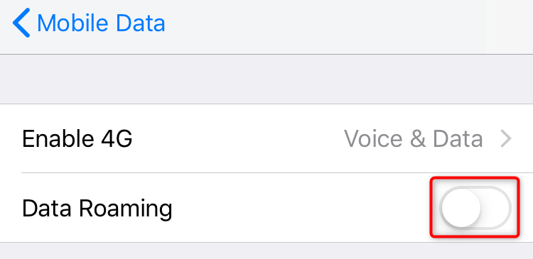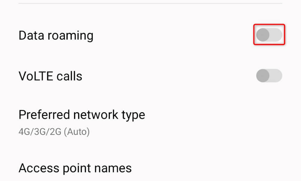 一部のキャリアでは、データローミングを有効にして電話をかける必要があります。携帯電話でこのオプションをオフにした場合は、オプションをオンにして問題を解決します。
