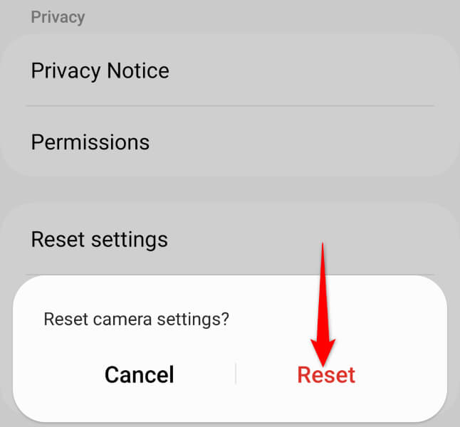 - 選択しますアプリ>カメラ>カメラの設定タップします設定をリセットします。