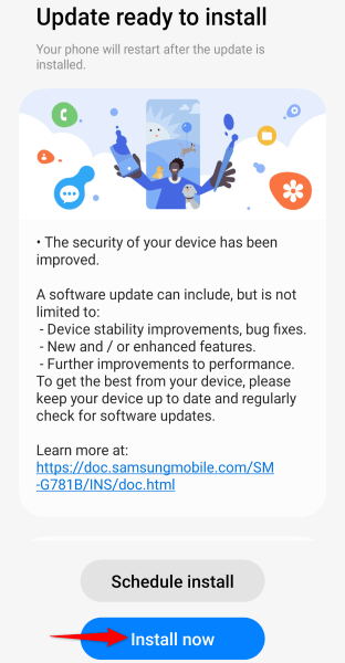 - タッピングで更新をインストールします今すぐインストールしてください。