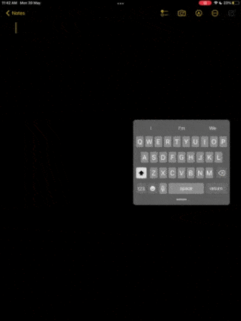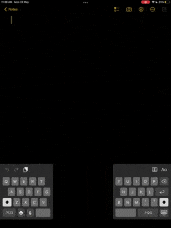 スプリットキーボードでは、前に見たように、キーボードは2つの半分に分割され、画面の両側に移動します。それは、小さな手を持っている人にとっては、キーボードのすべての側面で指を動かすことができない人にとっては良い機能です。この機能を使用して、iPadを両手で保持しながら入力することもできます。