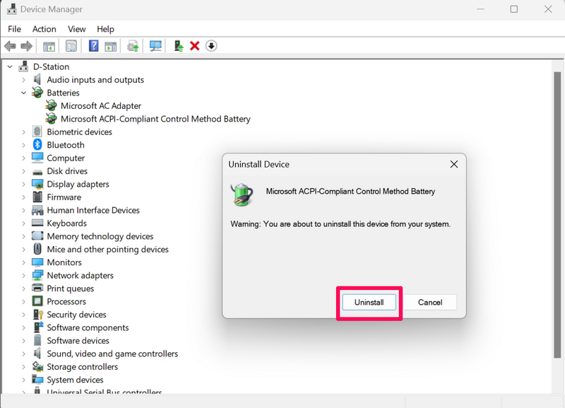 そのため、下の手順に従って、Windows 11デバイスのACPI準拠制御メソッドバッテリードライバーを再インストールできます。