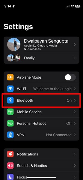 6。それを確認してくださいBluetoothが有効です。そうでない場合、Bluetoothオプションの横にあるトグルをタップします電源を入れます。
