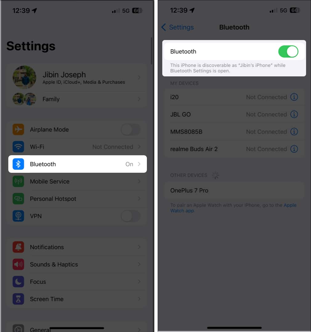 他の真のワイヤレスイヤフォンと同様に、Apple AirpodsはBluetoothに依存してiPhoneに接続します。したがって、AirPodsまたはAirPods ProがiPhoneに接続していないことがわかった場合は、iPhoneのBluetooth設定を簡単に確認してください。
